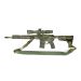 OD green US Gear sling with wide webbing on the support end to better distribute the weight of a scoped rifle. Includes 2 QD swivels.