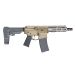 It’s built on clear anodized M16 spec receiver set (no forward assist), and features the same fast-twist barrel, Cherry Bomb muzzle brake, adjustable gas block, and 6-inch M-LOK handguard as the higher priced Honey Badger. It uses a 6-position receiver extension (AKA “buffer tube”) that houses a carbine length action spring and buffer, and is topped off with a custom grey SB Tactical SBA3™ Pistol Stabilizing Brace (PSB).